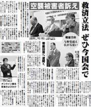 戦後75年、老いた被害者の人生に安らぎを―。全国空襲被害者連絡協議会は18日、国会内で総決起集会を開きました。空襲などによる民間戦争被害者の救済法案を12月5日までの臨時国会会期中に必ず制定するよう要求。