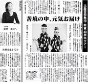 新潟県佐渡市を拠点に世界で活躍する太鼓芸能集団・鼓童が、創立40周年ツアー第1弾「ワン・アース・ツアー2020~鼓」を行っています。出演する米山水木さん、北林玲央さんに話を聞きました。