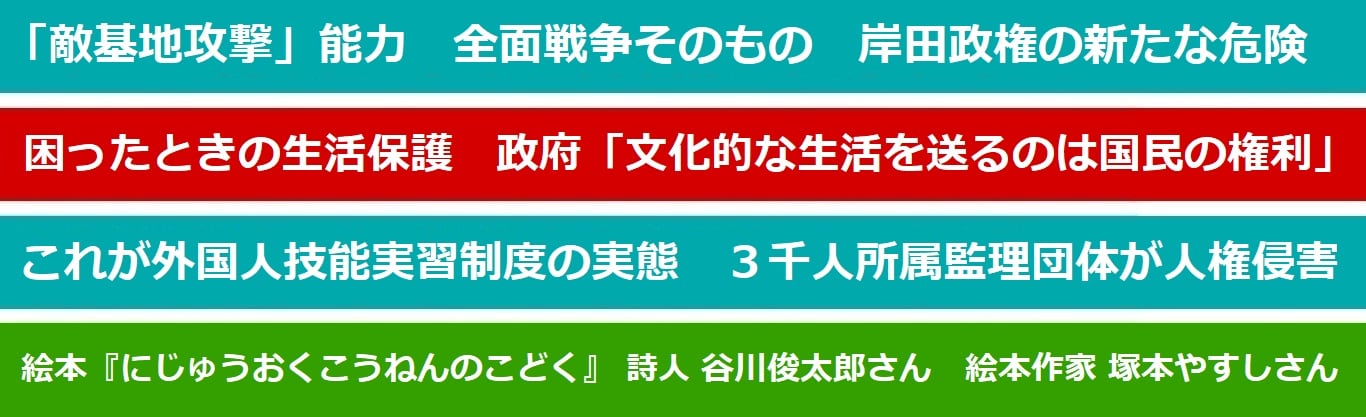 「こんなものが憲法9条の下で認められるわけがない」。日本共産党の小池晃書記局長の声が響きました。17日の参院予算委員会。小池氏が取り上げたのは「敵基地攻撃」能力の保有。岸田文雄首相が歴代首相として初めて所信表明演説の中で「検討」を明言しました。