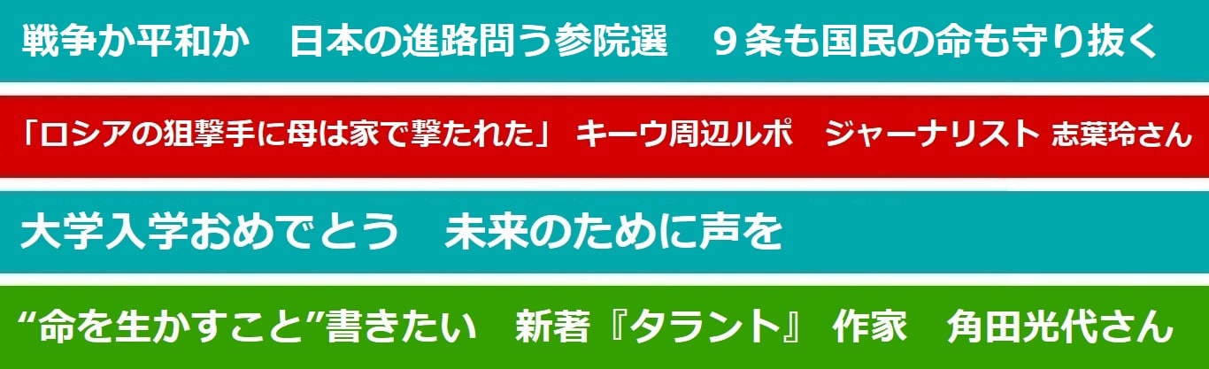 参院選の公示まで2カ月あまり。ロシアのウクライナ侵略という大問題が起こるなかで、世界の平和秩序をどうするか、日本はどういう道を進むべきか、“戦争か平和か”―日本の進路が根本から問われる、歴史的な選挙になります。