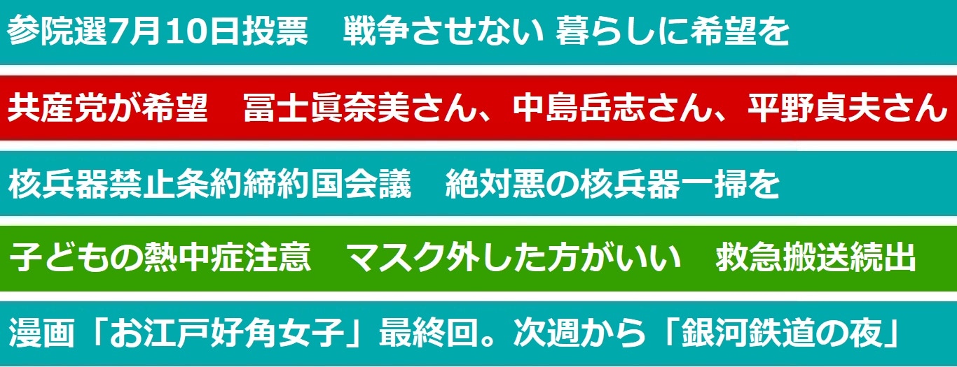 参院選は7月10日投票です。日本共産党に期待を寄せる各界の方の談話を紹介します。