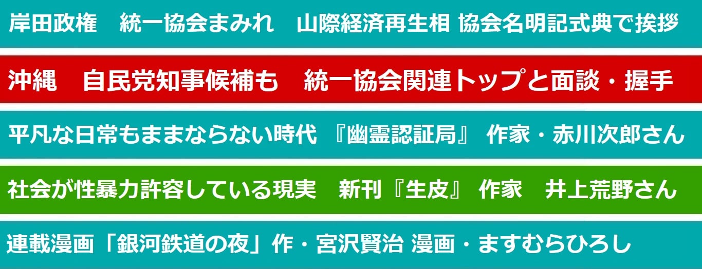 統一協会(世界平和統一家庭連合)と自民党との癒着は底なしです。岸田文雄首相は内閣改造・党役員人事(10日)をしたものの、逆に、自民党と統一協会との深刻な癒着を“証明”する結果に。内閣改造をしても内閣支持率が下落する異例の事態で、岸田政権は深刻な行き詰まりに直面しています