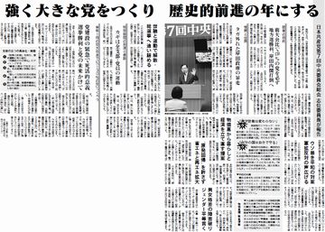年明け5日、日本共産党は第7回中央委員会総会(7中総)を開きました。来年1月に開催予定の党大会までに、前大会比で130%の強く大きな日本共産党をつくることを最大任務とし、今年を強く大きな党をつくる歴史的な年にする決意を固め合いました。志位和夫委員長が行った幹部会報告の要点を紹介します。