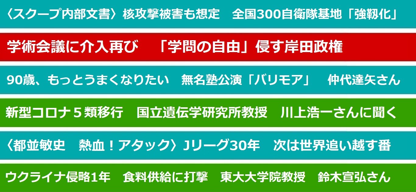 全国約300の自衛隊基地を化学・生物・核兵器などによる攻撃に耐えるよう整備する―。全国どこでも戦場となることを想定した計画を防衛省が立てていたことが編集部の調べで分かりました。敵基地攻撃能力の保有と大軍拡を狙う岸田政権は、計画の全貌を国会にも国民にも隠ぺいしています。