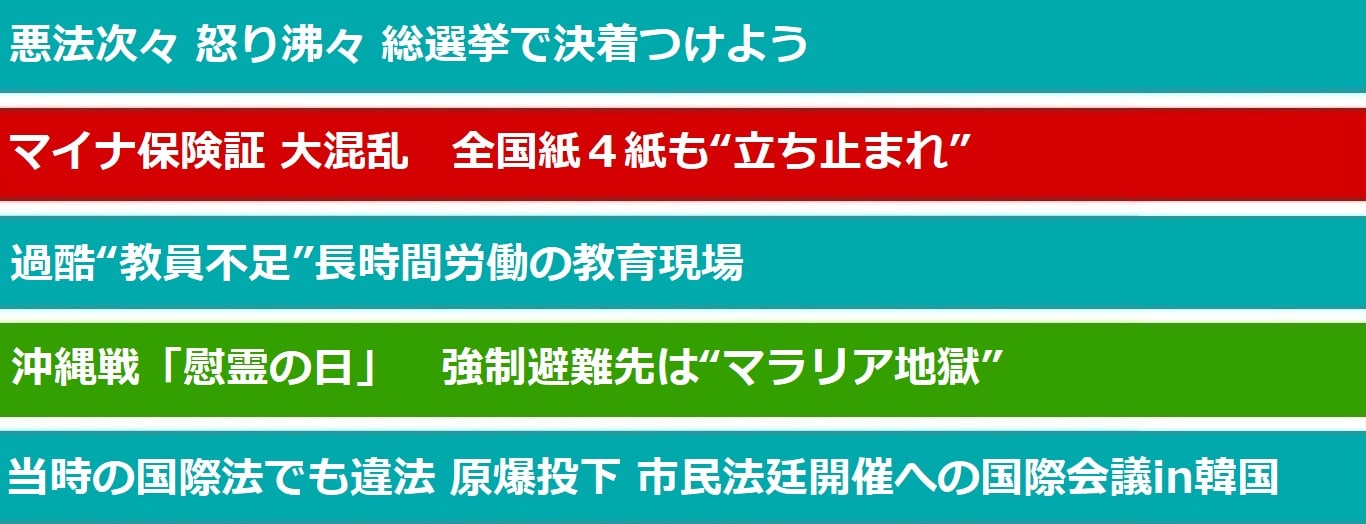 「岸田政権は私たちの声を聞け!」―。国民の怒りの声が広がり、内閣支持率が急落しています。日本の進路を左右するような重大法案が、次つぎと強行された通常国会。岸田政権と与党の自民・公明に加え、維新、国民両党が手助けしたからです。