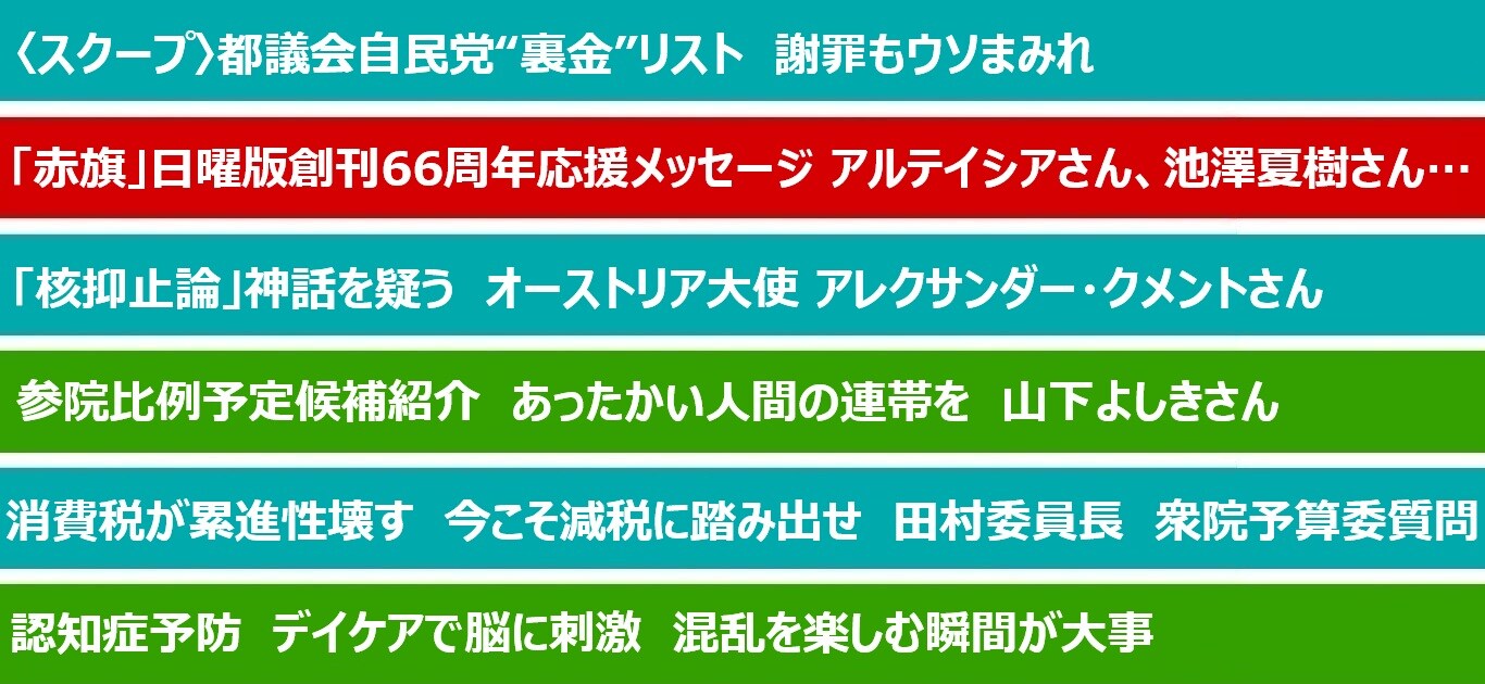 3月1日は「赤旗」日曜版の創刊66周年。期待のメッセージを寄せていただきました。