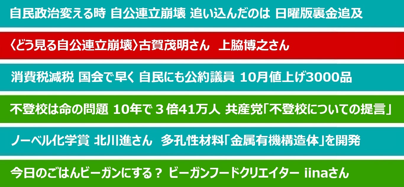 「赤旗」日曜版の裏金スクープが、昨年の衆院選、今年の参院選で与党を少数に追い込んだだけでなく、“自民党の政権維持装置”といわれる自公連立を崩壊に追い込みました。