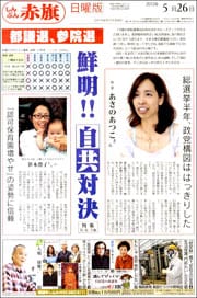 国民の政治不信をますます深める民主と自民の「二大政党」。日本共産党は「全国活動者会議」(5月24日、25日)を開き、この閉塞(へいそく)状況を打ち破る、強く大きな党に成長する取り組みを強めています(5月24日から7月31日までを、総選挙勝利をめざす、「『大運動』目標総達成の特別期間」に設定)。会議での志位委員長の幹部会報告のポイントを紹介します。各地から64人が発言。発言から見えた対話と共同の現場では―。三重県商店街振興組合連合会理事長の鯉江盈さんとコメディアンの松元ヒロさんのコメントも紹介します。