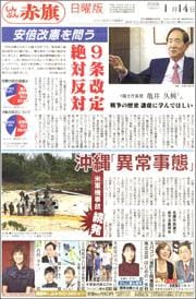 最初の日から「安全策」は骨抜き―。1日から米海兵隊の欠陥機、MV22オスプレイの配備が強行された沖縄県宜野湾市の米軍普天間基地。オスプレイは、飛行経路など「安全策」さえ無視して市街地上空をわが物顔に飛びました。沖縄県北谷町の野国昌春町長と沖縄県生活協同組合連合会会長の東條渥子さんにも話を聞きました。俳優・演出家の米倉斉加年さんのコメントも紹介します。