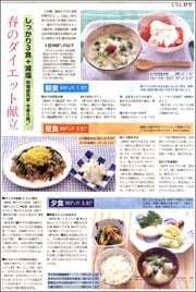 この春、服装とともに身体も軽やかに-。3食しっかり食べられる1日1600カロリー・塩分7グラム以下のダイエット献立を、料理研究家・栄養士の今泉久美さんが紹介します。