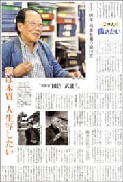 日本写真家協会会長を20年間務めるなど、日本を代表する写真家のひとりで、日曜版では、黒柳徹子さんとのユニセフ活動報告でおなじみの田沼武能さん(86)。66年の写真家人生です。