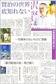 好評連載の「銀河鉄道の夜」。ジョバンニとカンパネルラは銀河鉄道に乗り込みました。いよいよ銀河への旅に出発します。(16、17面)