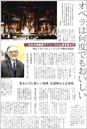 アメリカ出身の日本文学研究者、ドナルド・キーンさん(93)は、実は大のオペラ好きです。現在のお気に入りは、アメリカの最新オペラ公演を撮影し映画館で上映する「METライブビューイング」。オペラの魅力と平和への思いを語りました。