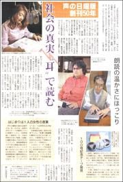 「声のしんぶん赤旗日曜版」はCDとテープの"耳で読む"新聞です。第1号を発行してから今年で50年になります。多くの人に支えられて1週も滞ることなく発行し続け、11日で2600号を迎えます。