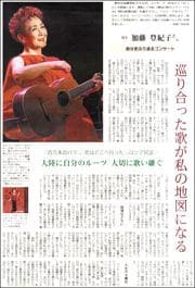 この秋、加藤登紀子さんは歌手生活55周年を迎えます。節目の年のコンサートのテーマは"愛"。コンサート「LOVE LOVE LOVE〜愛の4楽章」を前に聞きました。(16面)