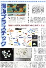 身の回りにあるプラスチックがごみとなって地球上の海の至る所で見つかっています。餌と間違えて、のみ込んで体内に詰まらせるなど、海にすむ動物にとって重大な脅威です。東京農工大学教授の高田秀重さんにも話を聞きました。(16、17面)