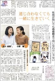 小野春さんと西川麻実さんは、同性パートナーです。お互いのの連れ子を育てながら、ともに暮らして14年。同性婚が認められないのは憲法違反だとして、国を相手取り提訴しました。(16面)