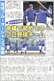 沖縄県初のプロ野球チーム、琉球ブルーオーシャンズは日本プロ野球組織にも独立リーグにも所属しない新たな形のプロ球団です。(16面)