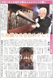 世界各地で45年にわたり、古い様式のパイプオルガンを製作する横田さんの神奈川県にある工房を訪ねました。(16面)
