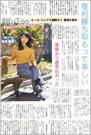 #KuToo-。職場や就職活動で女性だけにヒールのある靴やパンプスを強制することに異議を唱える運動です。俳優でライターの石川優実さんがネット署名を呼びかけて1年余。話を聞きました。(16面)