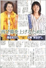 新型コロナウイルスに関わる自粛要請で、演劇や音楽など舞台芸術が深刻な打撃を受けています。国に適切な補償を求めている日本劇作家協会会長の渡辺えりさんと、企画・製作会社「明後日(あさって)」代表取締役の小泉今日子さんが、演劇や芸能への思いをオンラインで熱く語り合いました。(1、16、17面)