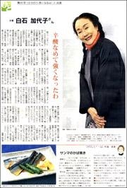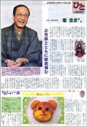 東北の寒村を舞台に戦中戦後の学童疎開と高度成長期の日本の影の部分を描く現代劇「武蔵坊海尊」。白石さん演じる"おばば"は、仙人・海尊の妻と称する、いたこで物語の要です。(36面)