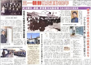 2019年は三・一独立運動から100年です。朝鮮半島が日本の植民地支配下にあった1919年3月1日、現在の韓国・ソウルで独立宣言書が読み上げられ、民衆が朝鮮全土で立ち上がりました。(18、19面)