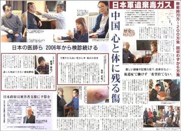 アジア・太平洋戦争の終結から75年。中国には、日本軍が敗戦時に遺棄した毒ガス兵器が多数残されています。市民が新たに被害に遭う例が絶えません。昨年12月の日本の医師による被害者への検診活動のリポートです。(18、19面)