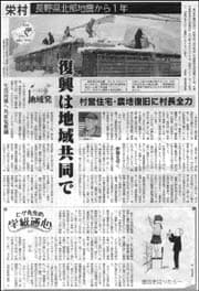 東日本大震災の翌日、昨年3月12日に発生した長野県北部地震から1年。大きな被害を受けた同県栄村(人口約2300人)では、地域のコミュニティーを守り、「村民が主人公」で復興にとりくんでいます。