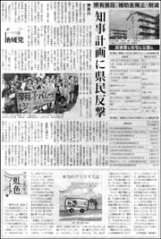 徳島市で、音楽芸術ホールを核とした新町西地区再開発が、住民合意もなく強引に進められ大きな問題になっています。これまで海洋パーク建設、吉野川可動堰(ぜき)事業を住民投票で中止に追い込んできた住民パワー。再開発にも「税金のムダ遣いだ」と反対の声を広げています。