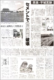 国の特別史跡で世界遺産にも登録されている奈良市の平城宮跡。いまその中心区域をセメントと土で舗装する国交省の整備事業が大問題となっています。県内外から「文化の破壊だ」「埋蔵文化財が危ない」と批判が広がっています。