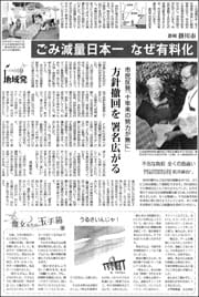 ごみ減量日本一を2年連続で達成した静岡県掛川市で、市当局がごみ処理有料化を打ち出し、市民の怒りが広がっています。市民の運動で4月からの実施は断念させましたが、市は本年度中の実施を狙っています。