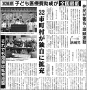 東日本大震災以降、宮城県内35市町村のうち、32市町村(7月現在)が、子どもの医療費助成制度を拡充させています。県に拡充を求める市民団体の運動の大きな成果です。この背景には、冷たい宮城県政が...。