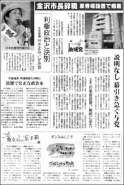 競輪場外車券売り場の設置などをめぐり特定業者に便宜を図ろうとした疑惑で金沢市長が先月、辞職しました。背景には市長や与党が一体となった利権政治が...。市長辞職にともなう市長選は9月28日に告示され、10月5日投票でたたかわれます。「市民本位の金沢市政をつくる会」は、同会代表委員の日本共産党金沢市議団長の升きよみ氏(71)を擁立し、金沢市政の転換に全力をあげます。