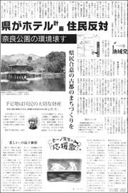 名勝・奈良公園の浮見堂近くに、奈良県が高級リゾートホテルの建設計画をすすめ、県民や自然保護団体などから反対の声が上がっています。8日に、「奈良公園の環境を考える」シンポジウムが開かれました。