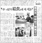 中学校給食は、全国では90.2%の公立中学校で実施しています(2016年5月1日現在)。神奈川県は実施率27.3%(同)と4年連続最下位です。横浜市は実施ゼロで、中学校給食をもとめる声が上がっています。