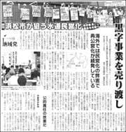 「市民の大切な飲み水をもうけの対象にしないで」-。2022年をめどに上水道の民営化を狙う浜松市に、市民から反対の声が上がっています。