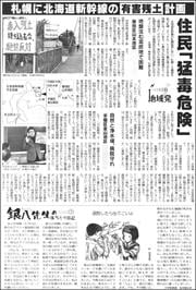 北海道新幹線の札幌延伸に伴い、札幌小樽館を結ぶ札樽トンネル工事の残土が大きな問題になっています。ヒ素などの有害物質が入った「要対策土」だからです。(33面)