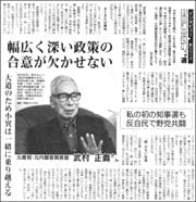 各界の方に野党連合政権についての思いを聞く「インタビューシリーズ 野党連合政権への道」。第3回は、元公明党副委員長、元運輸大臣、衆院議員10期の二見伸明さんに話を聞きました。(2面)