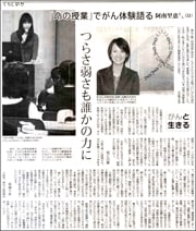 ある日突然、がんを告知されたショック。診断から治療、退院・社会復帰、再発―患者はいくつもの過程で不安や困難に直面します。そんな時、同じ病気を経験し、気持ちが分かる仲間(ピア)がそばにいれば心強いもの。がん体験者による支え合い―「ピアサポート」の現場をみました。