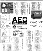 突然心臓が止まって倒れた人に、救命措置をするためのAED。日本AED財団の太田修司さんに効果と適切な使い方を聞きました。(9面)
