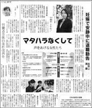 妊娠、出産を理由にした嫌がらせはマタニティーハラスメント(マタハラ)といわれ、解雇や不利益な取り扱いは法律で禁止されています。しかし、被害は後を絶ちません。「マタハラをなくして」と女性たちが声をあげています。弁護士の今野久子さんにも話を聞きました。