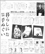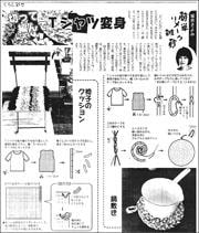簡単に楽しめる針仕事を、イラストレーターで、ソーイング教室主宰のワタナベ・コウさんが紹介するシリーズ。今回は、内布をつけたスリッパ用巾着袋を紹介します。(11面)