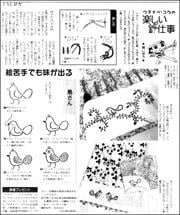 簡単に楽しめる針仕事を、イラストレーターで、ソーイング教室主宰のワタナベ・コウさんが紹介するシリーズ。今回は、フェルトを利用した、かわいいパスケース作りです。(9面)