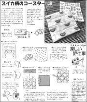 簡単に楽しめる針仕事を、イラストレーターで、ソーイング教室主宰のワタナベ・コウさんが紹介するシリーズ。今回は、スイカ柄のコースターを作ります。(9面)