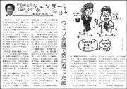新連載"性とその周辺のなんでも屋さん"の、あかたちかこさんの「だらだらしゃべろうジェンダーな日々」が始まります。年4回掲載の予定です。(8面)