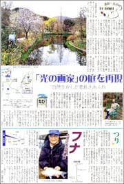 つり欄は「釣り人が主人公」。どの記事も季節の釣り物を現場に足を運んで記録したものばかりです。「信頼できる内容」と好評を得ています。全国の釣り人が、厳しい山岳渓流のイワナや、釣りの対象としては最深のアコウダイの記録を寄せています。川から海から、釣りの対象になるほとんどの魚種が登場します。生態系のかく乱をはじめ、自然破壊や地球温暖化にいち早く気づくのも釣り人です。そんな現場の情報も報告されます。
