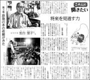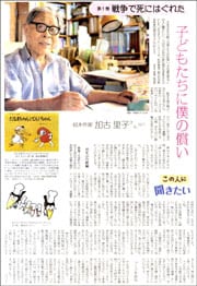 さまざまな分野で活躍する人が登場し、その道を語る「この人に聞きたい」。今回は、日本の伝統玩具だるまを主人公にした「だるまちゃん」シリーズや、科学絵本などで知られる絵本作家の加古里子さん(87)です。
