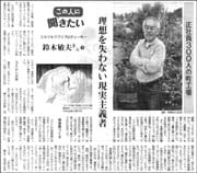 累計75万部を超すベストセラー『昭和史』で知られる作家の半藤一利さん。『週刊文春』『文藝春秋』編集長なども歴任しました。(3面)