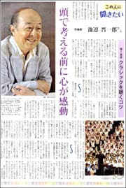 さまざまな分野で活躍する人に、その道を語っていただく新企画「この人に聞きたい」のスタートです。最初は作曲家の池辺晋一郎さんです。クラシックから「うたごえ」まで、音楽の魅力を4回にわたって語ります。